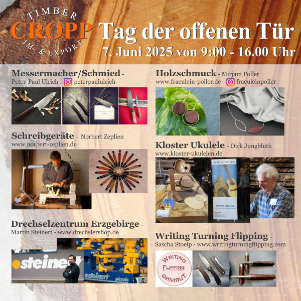 Wer in erreichbarer Nähe wohnt und ein Faible für die Be- und Verarbeitung schöner Hölzer hat, sollte sich diesen Termin unbedingt freihalten ...